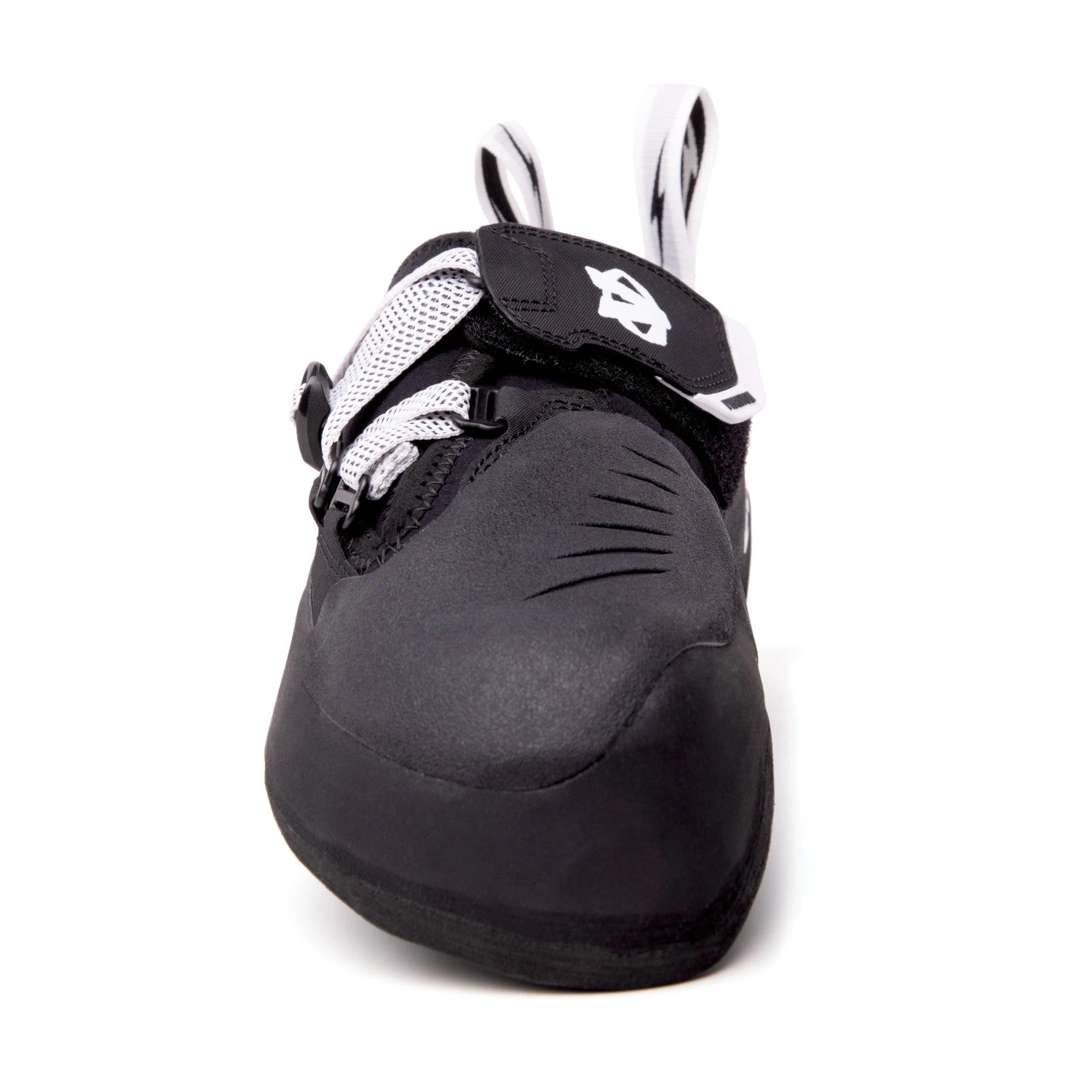Using Evolv’s TPS+ (Tension Power System Plus) technology, (similar to La Sportiva’s P3 power Platform), the Phantom will maintain its shape and profile throughout its lifespan. The midsole also uses an AVT (Abridged Variable Thickness) to give you more toe sensitivity whilst not compromising on support. The 6 point, single pull, closure allows for quick and easy adjustment to fit with excellent security and the addition of D rings add to durability. Finally, the heel is the most sensitive in the Evolv range, dubbed Dark Spine S, this is the combination of the Dark Spine midsole with a thinner 2mm heel outsole making it excellent for hard heel hooks and foot cams.