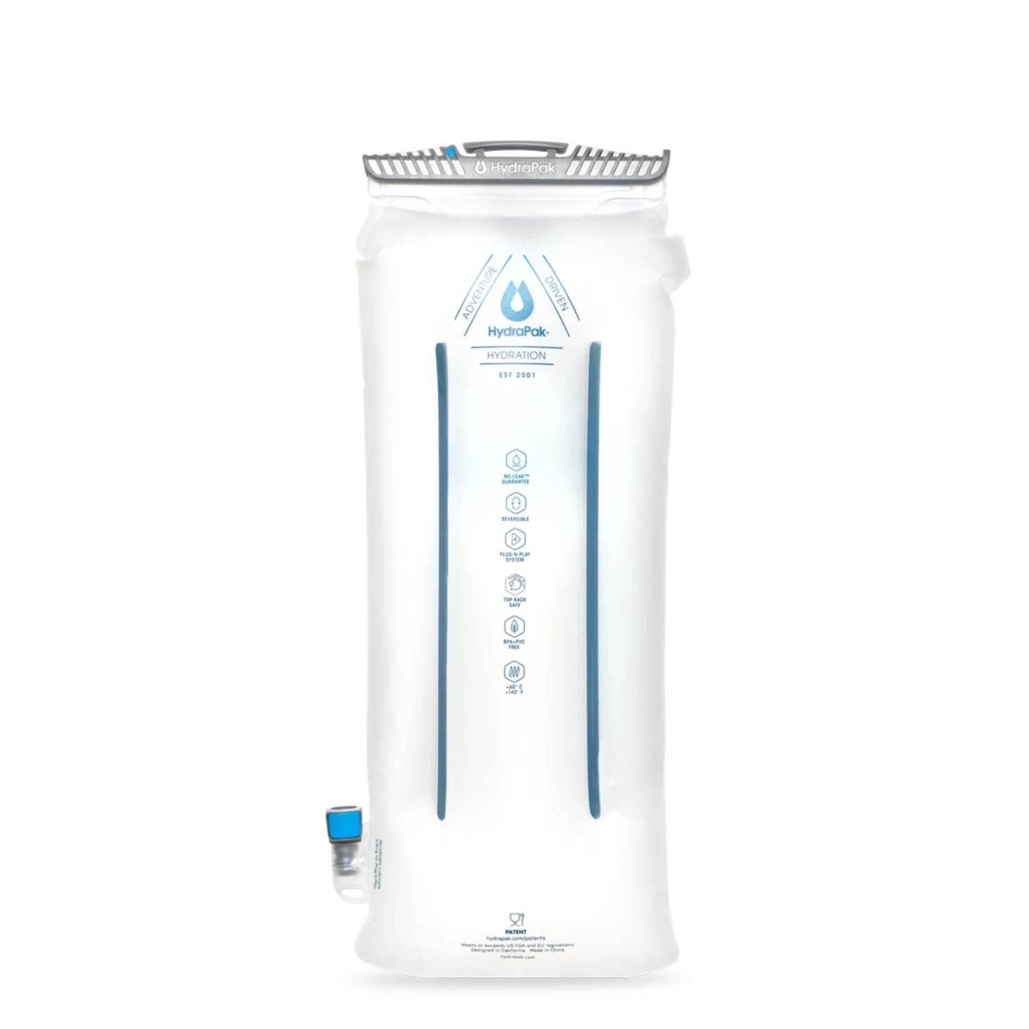 The Hydrapak Contour 3L is a slim but generous hydration reservoir designed to fit in a plethora of packs to keep you hydrated on extended hiking and backpacking adventures.