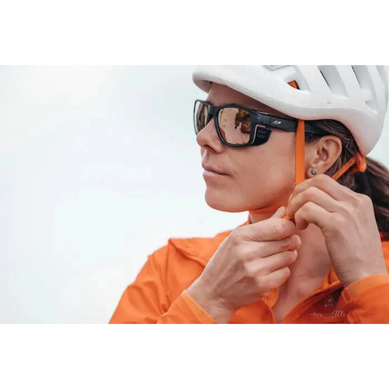 Julbo has created high-protection, high-performance pair sunglasses by combining its high-altitude technical prowess without sacrificing style. Sheild ‘M’ is built on a slightly smaller frame than the standard pair of Julbo Shields for slimmer face profiles. Side shields made of removable fabric offer unrivalled protection and comfort. Equipped with the Air Flow venting system, will be your go-to ally when the going gets tough on the ascent. Thanks to curved Grip Tech temples and a non-slip bridge, they’ll stay firmly in place. And the sophisticated design will add a dash of daring to your next high-altitude adventure.