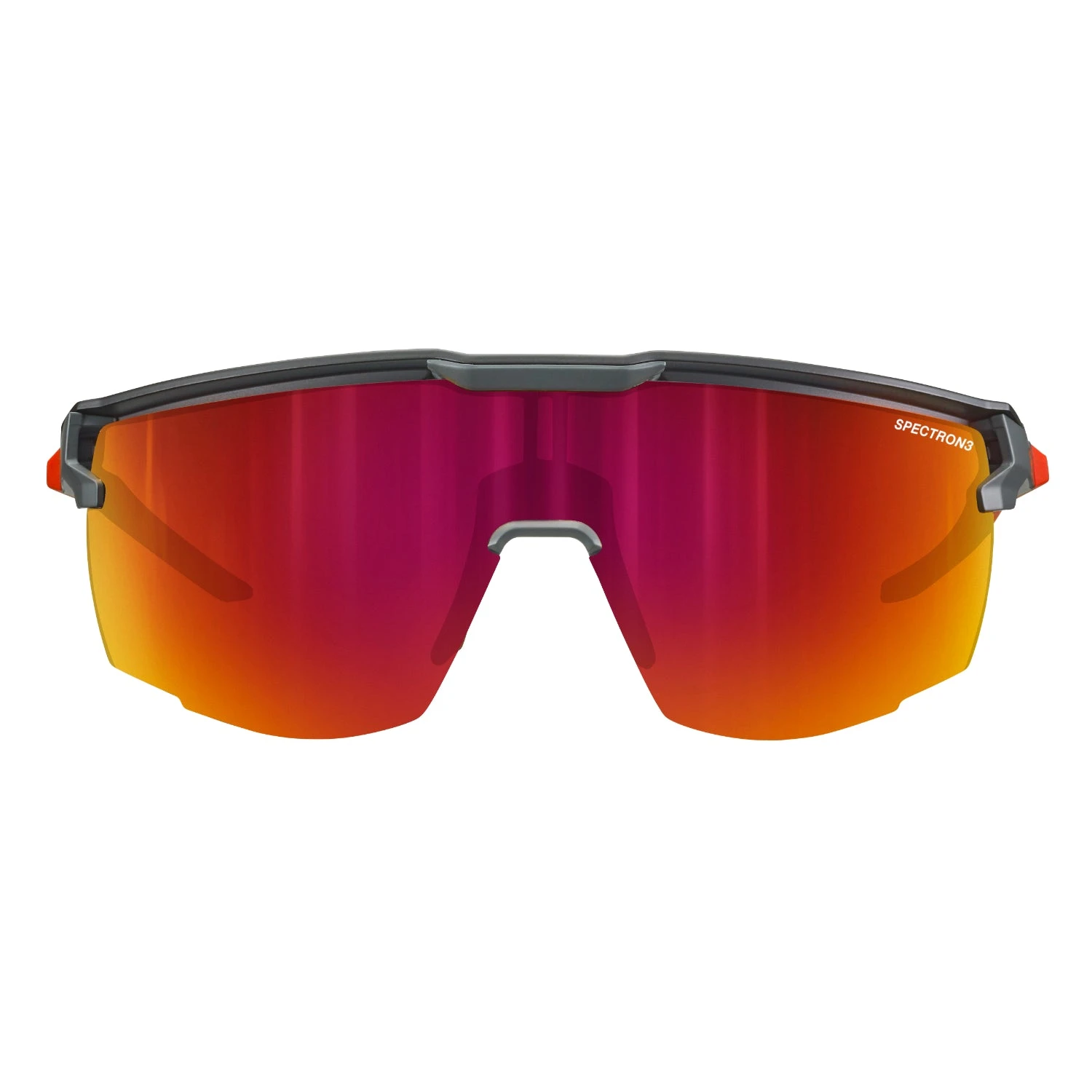 The tapered outline of Julbo’s Ultimate sunglasses model pushes the limits of performance. Every line and detail of this model’s geometry is intended to serve a single purpose: to give you complete freedom in your sport. New CustomFIT temples with precise and long-lasting adjustment, combined with a Grip Tech structure, result in a custom-fit grip and a lightweight spec. The sunglasses, which feature a 3D Nose, provide a secure fit when working hard, with or without a helmet. A panoramic lens gives you an aggressive appearance while also providing protection and visual comfort thanks to Spectron 3 Polarised lenses. It’s now your turn to test the limits!