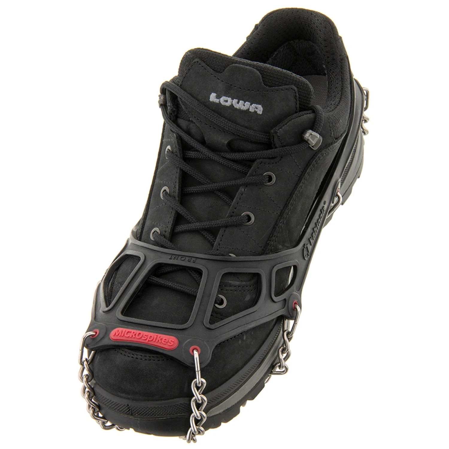 The Kahtoola MICROspikes are traction spikes that you slip over your footwear to provide grip on walking trails when in snowy, icy or muddy weather.