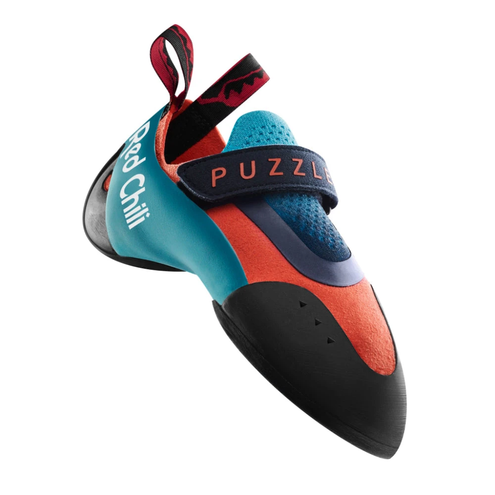 The Red Chili Puzzle is a children’s climbing shoe aimed at the stars of the future. The last has been adapted to the ergonomic and anatomic needs of growing feet. The heel is narrow and straight so won’t irritate the achilles’ tendon. while the toe box is specially shaped to avoid excessively compressing the toes.