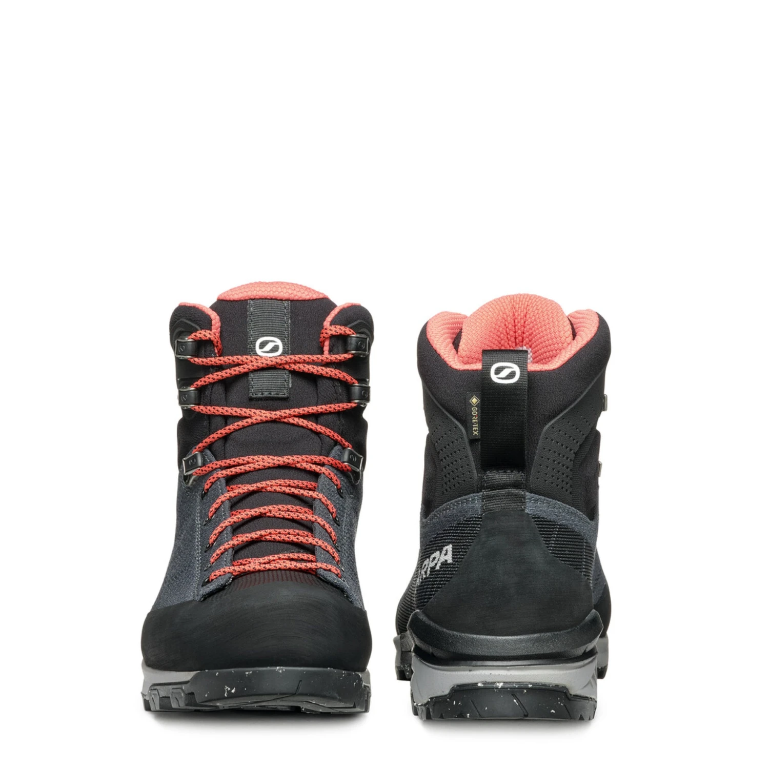 The Scarpa Mescalito TRK Planet GTX Womens is a waterproof, supportive walking boot with the same technical capabilities as the market-leading Mescalito family of approach shoes. This shoe offers the necessary performance for long trails over tough rocky terrain in the mountains, whilst leaving behind a much greener carbon footprint.