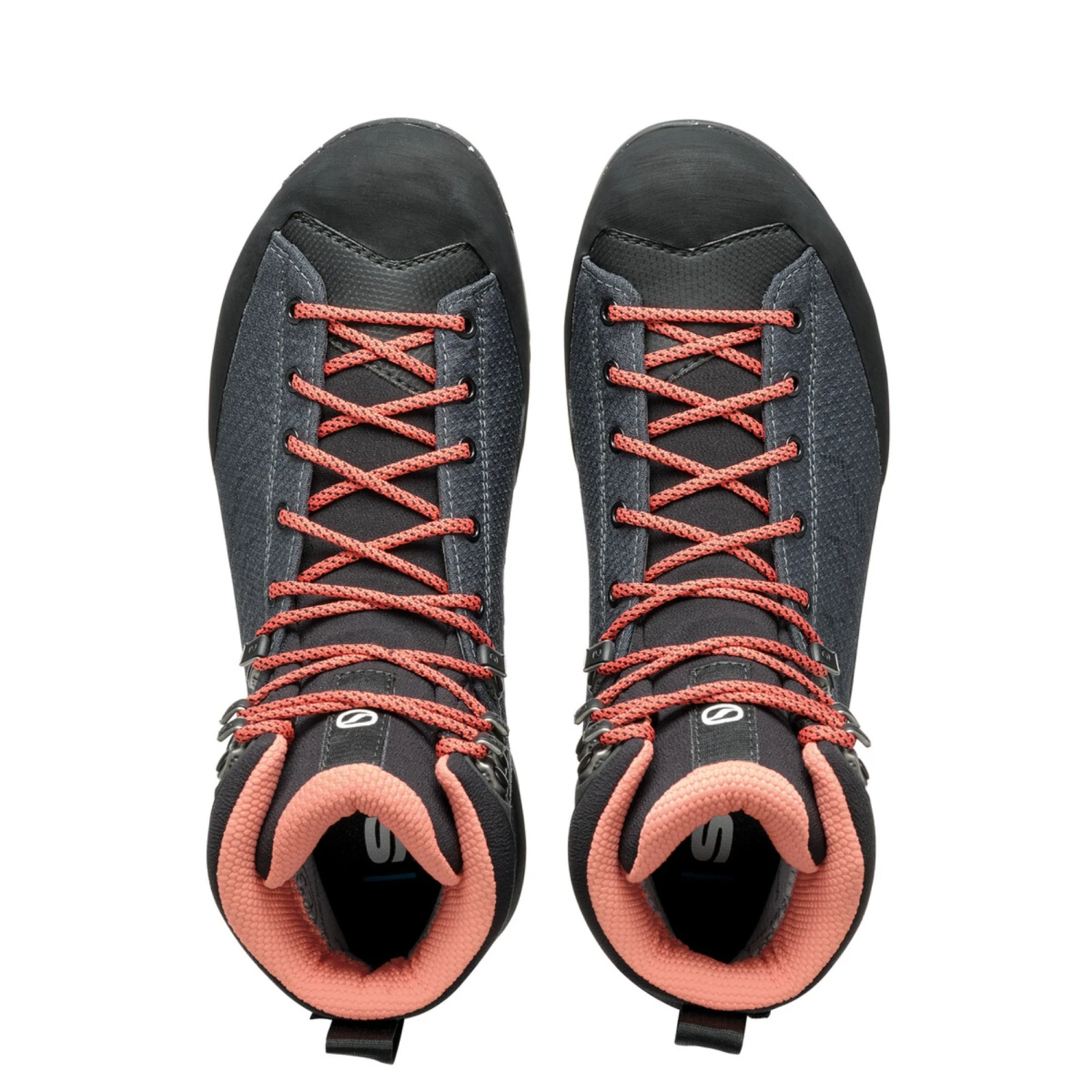 The Scarpa Mescalito TRK Planet GTX Womens is a cross between a walking boot and an approach shoe. The TRK GTX, which is based on the hugely popular Mescalito shoe, combines the best technologies with sustainable materials for all-day comfort, support, and stability.