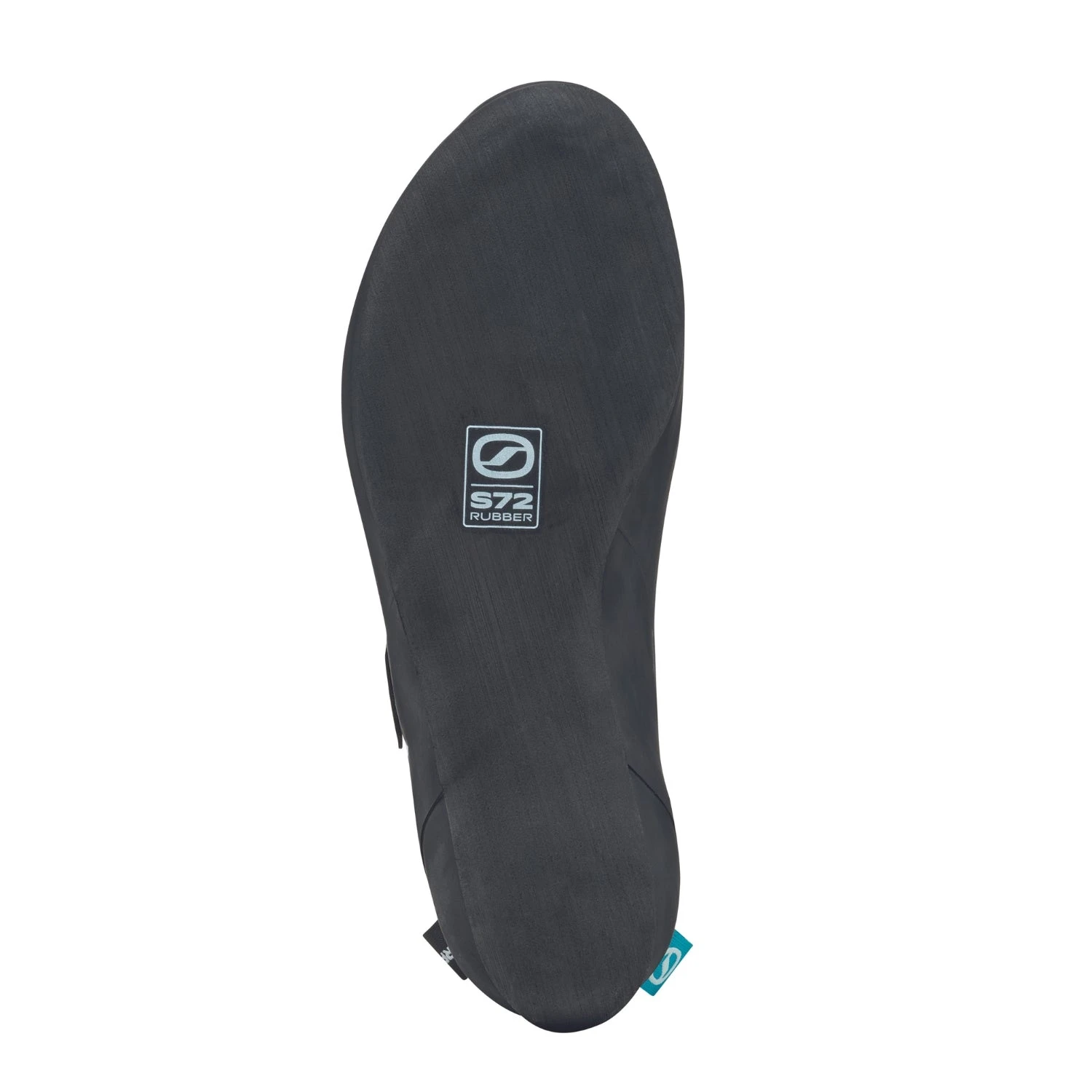 Rubber: S72 is a high-friction rubber, developed and tested by Scarpa. This soft compound gives a Shore A rating of 72, making it very adaptable to any surface and providing an excellent mechanical keying effect. S72 works equally well on rock and Indoor walls. Scarpa has cleverly welded rand rubber between the soft toe patch and sticky sole unit to reinforce the front of the shoes. This added durability helps prevent an early blowout of the toe ends which is a common trait with novice climbers whilst they are still honing their foot placement skills. The sole unit can also be resoled.