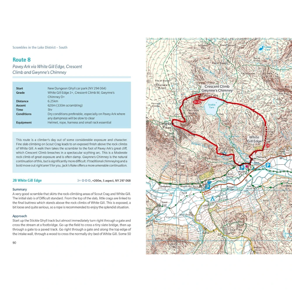 Scrambles in the Lake District South is a guidebook to 106 scrambling routes in the south of the Lake District, covering Langdale, Coniston, Eskdale, Patterdale & High Street. A comprehensive collection of scrambles on crags and gills, which are linked together to form 24 first-class mountain days. The carefully graded routes range from scrambling grade 1 to climbing grade V Diff, so there is something for beginners as well as veteran mountaineers where Rock climbing equipment is needed for more difficult routes.