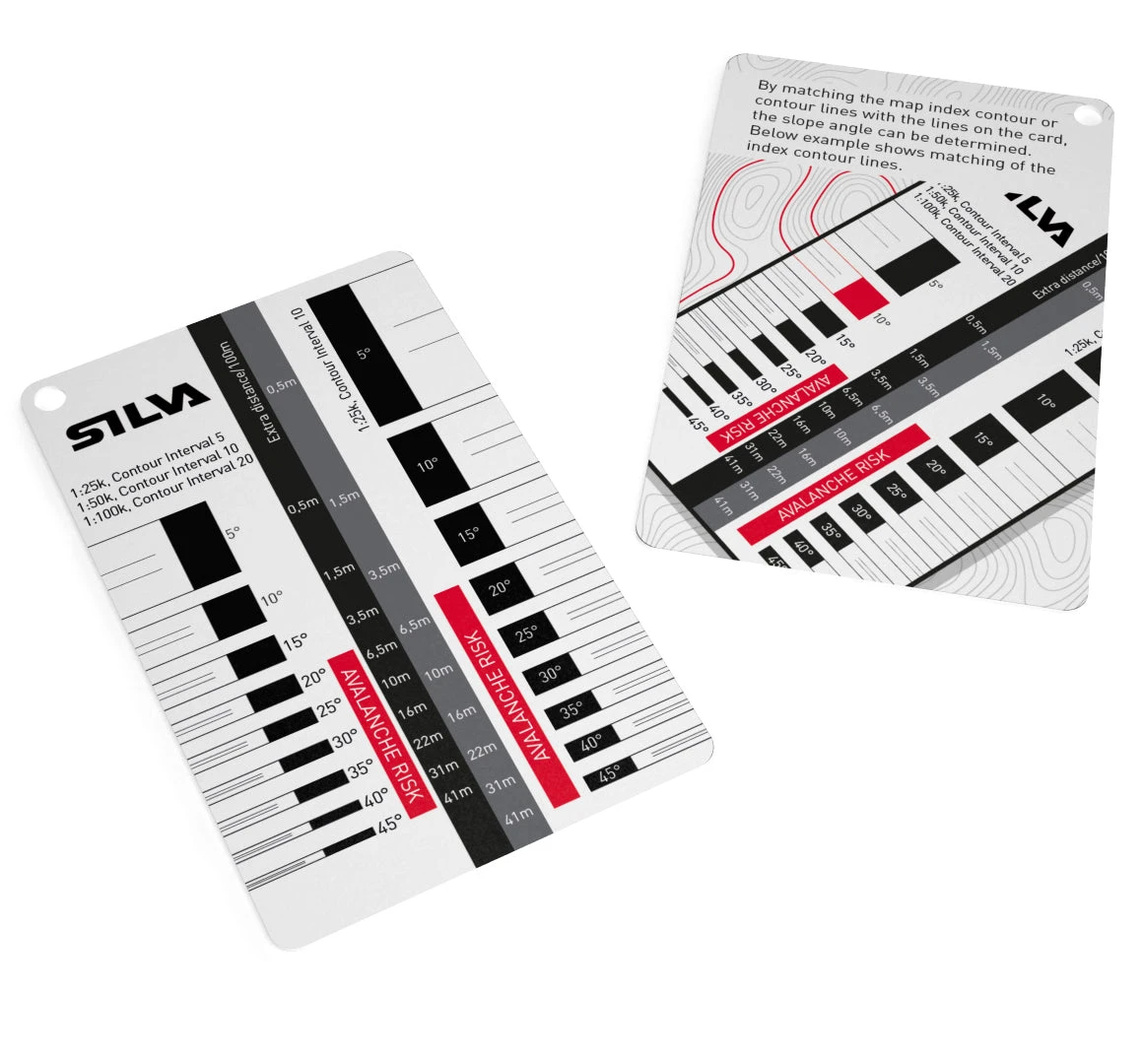 Coming with a slope card and a distance lanyard, the slope card is great both for detecting avalanche risk and for determining how challenging your journey will be. By knowing the slope you can also judge any extra distance that you need to go due to the slope. The distance lanyard has two scales on it; 1:25 and 1:50, which facilitates to measure the distance of your hike. Since its soft and bendable it’s easy to place it directly on to your route on the map.